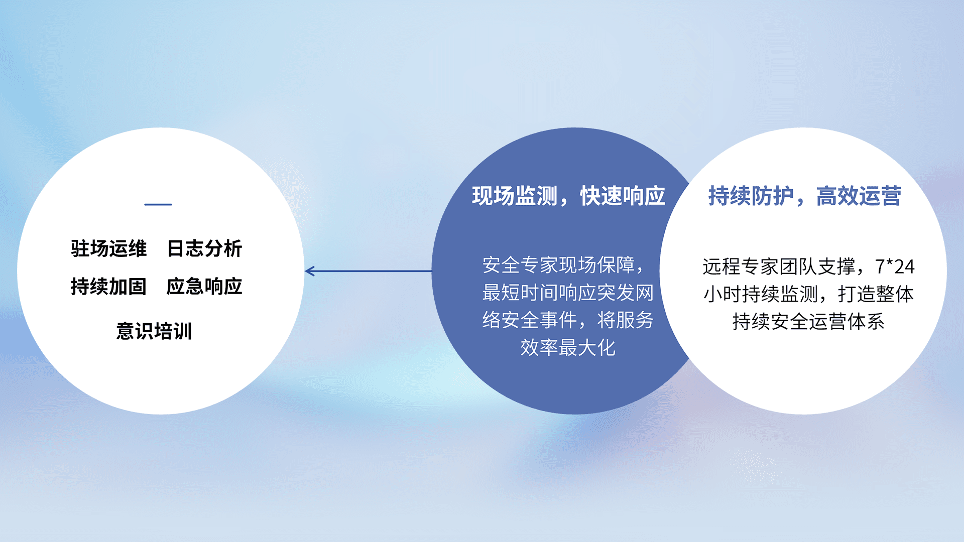 7X24小时持续监测安全事件,保持安全策略有效性,降低资产脆弱性风险,,精准拦截黑客攻击,,减少被黑客利用的机会,,,第一时间遏制,,降低损失。。。